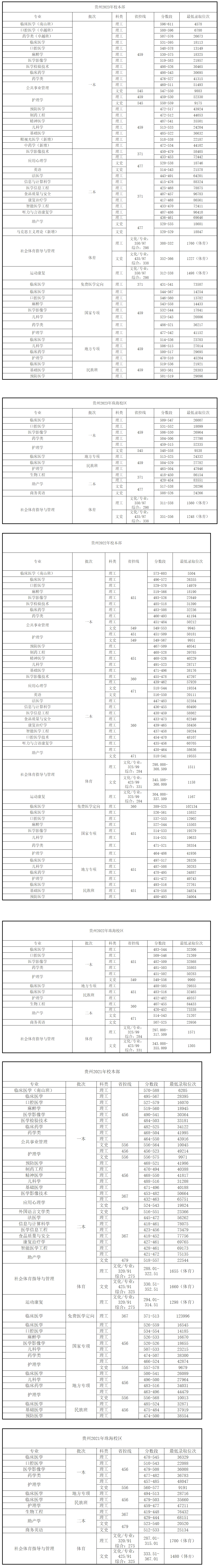 2023年 : 遵义医科大学-2023年招生分数线(贵州)