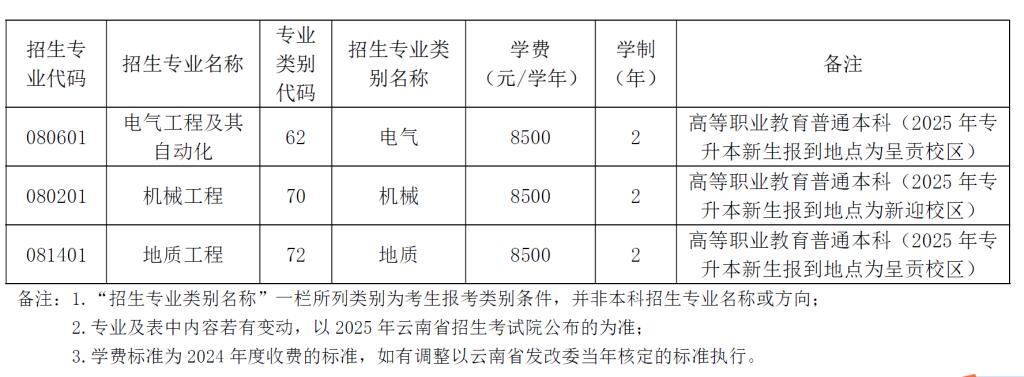 4.电气工程及其自动化、地质工程2个专业,2025年专升本新生报到地点为呈贡校区;机械工程专业2025年专升本新生报到地点在新迎校区。
