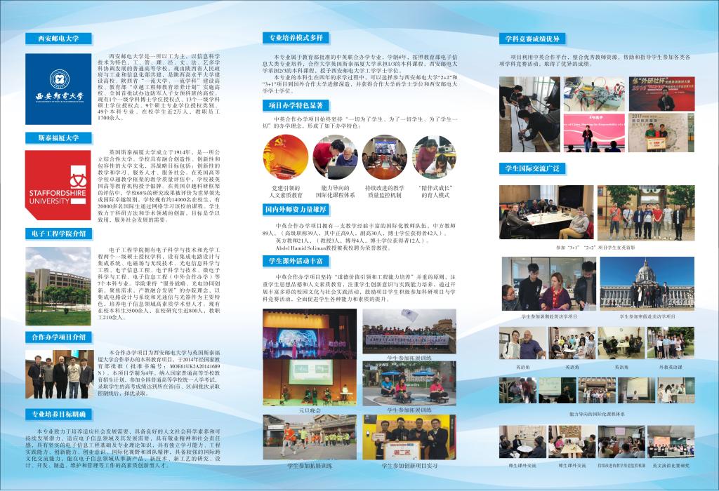 电子信息工程中外合作办学项目为西安邮电大学与英国斯泰福厦大学合作举办的本科教育项目,于2014年经国家教育部批准(批准书编号:MOE61UK2A20141689N)。中外合作办学专业只录取有该专业志愿的考生,入校后不能转专业。合作办学专业学制四年,采用“4+0”(四年均在国内)培养模式,完成全部四年学业且达到授位条件的学生,可获得西安邮电大学颁发的本科毕业证书和学士学位证书。
