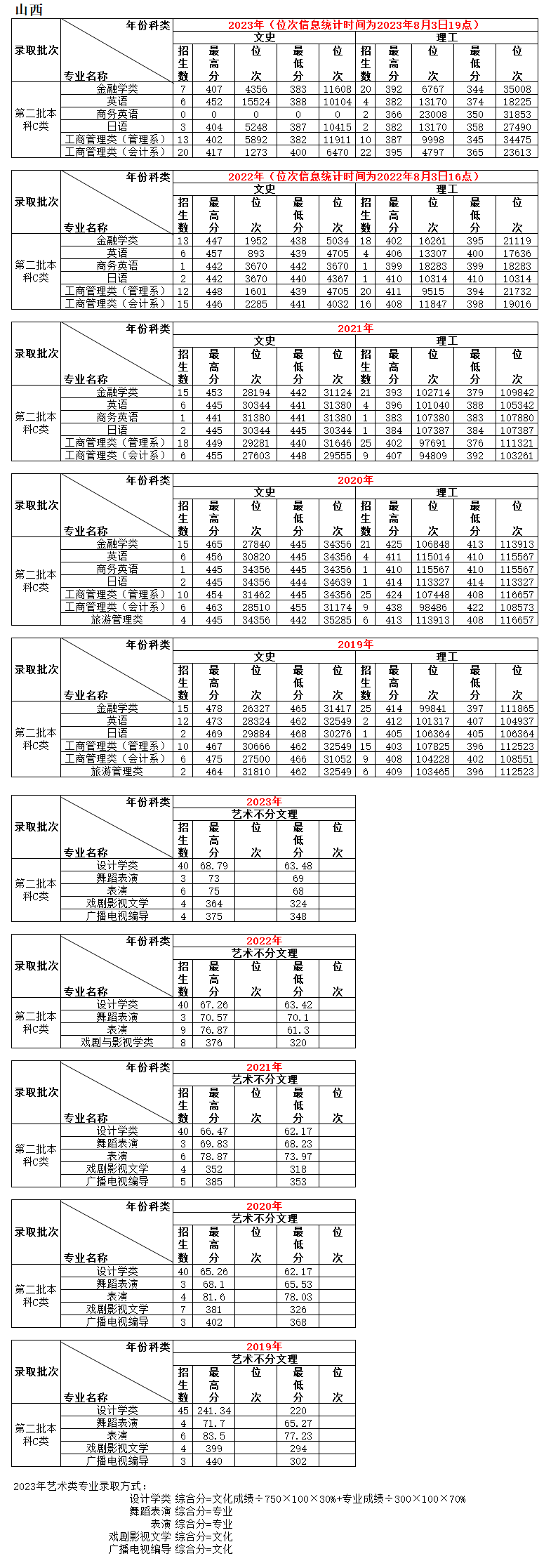 2023年 : 天津商业大学宝德学院-2023-2020年在山西省录取情况