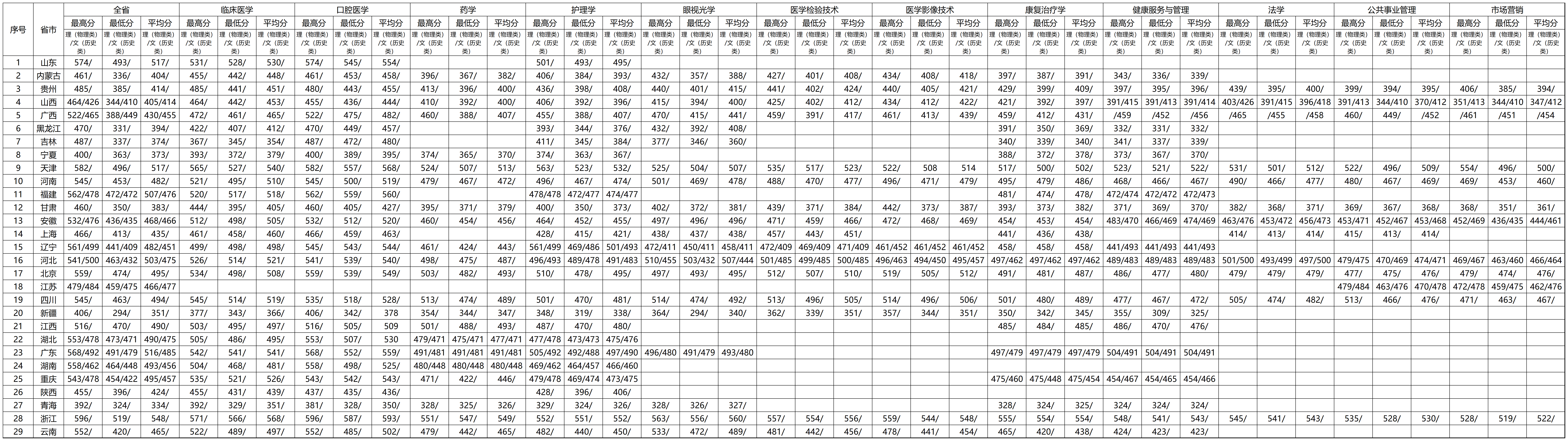 2022年 : 天津医科大学临床医学院-2022年分省分专业录取分数情况