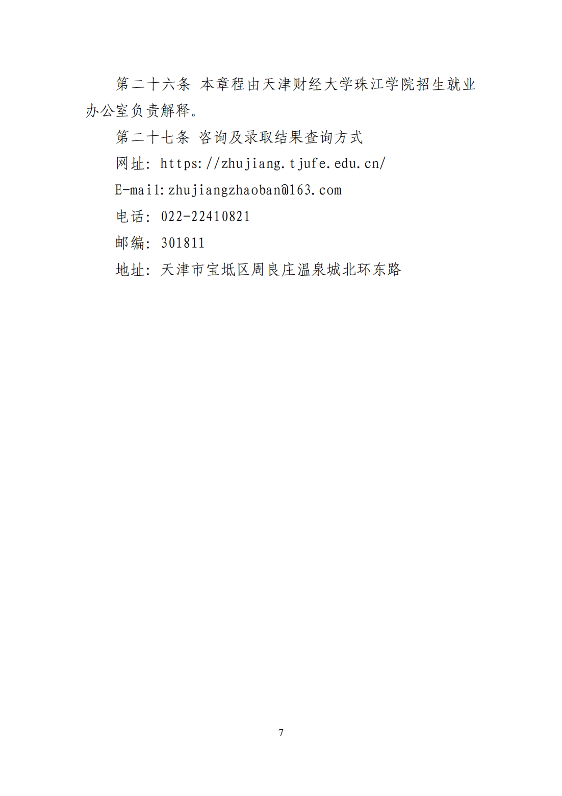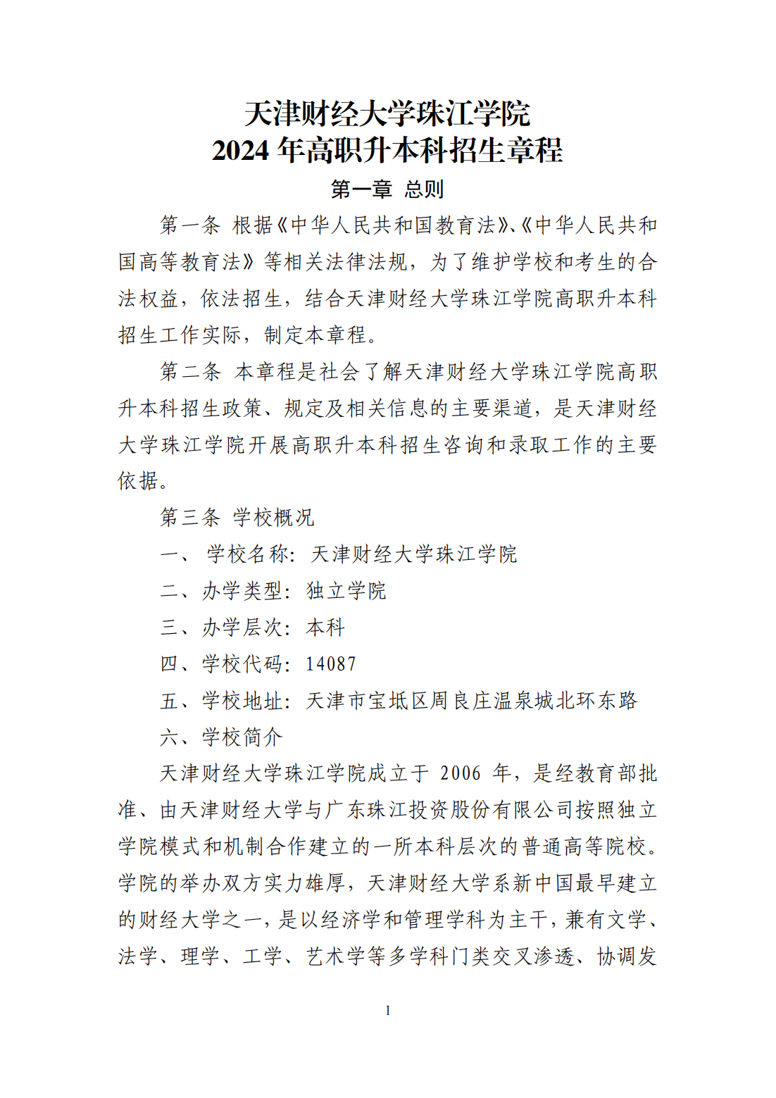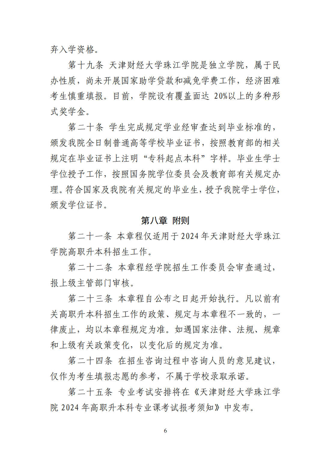 2024年 : 天津财经大学珠江学院2024年高职升本科招生章程