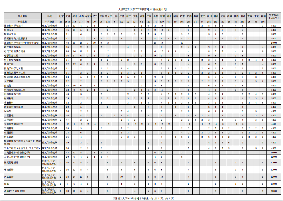 2021年 : 天津理工大学-2021年招生计划