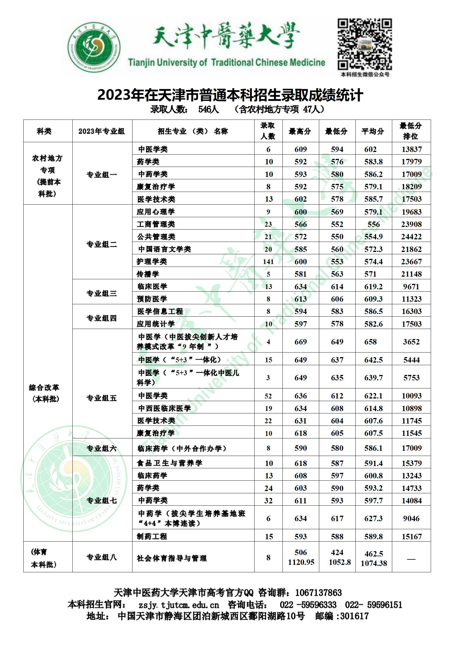 2023年 : 天津中医药大学-2023年在天津普通本科招生录取成绩统计