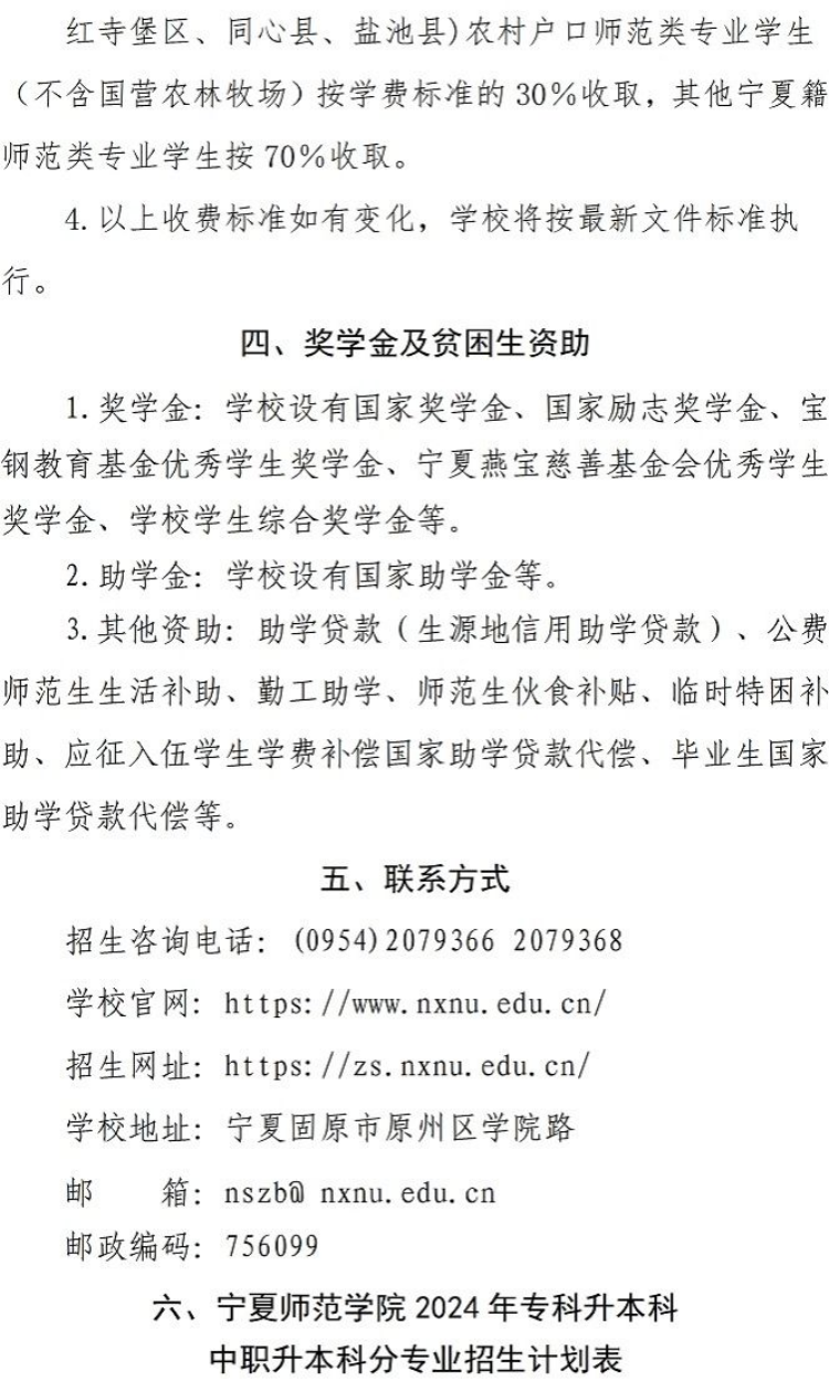 2024年 : 宁夏师范大学-2024年高职(专科)升本科、中职升本科招生简章