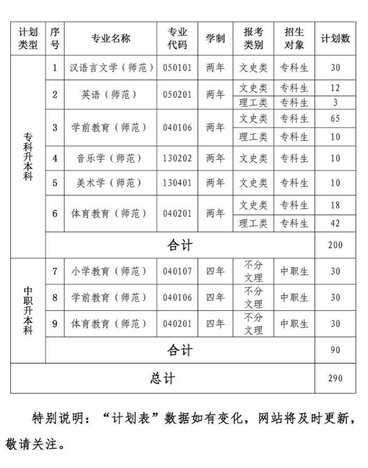 • 高考分类招生简章 · 招生计划 :