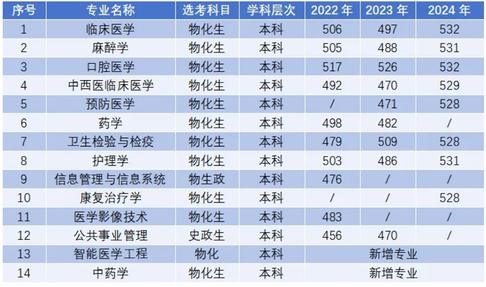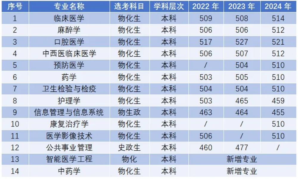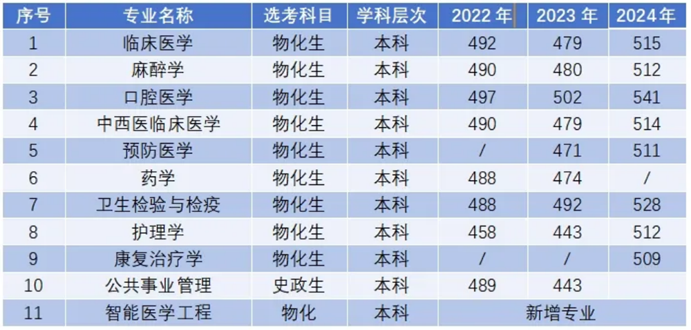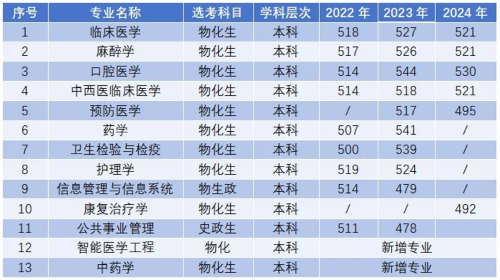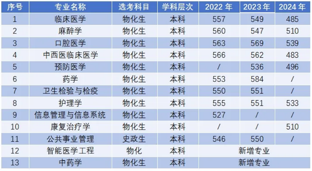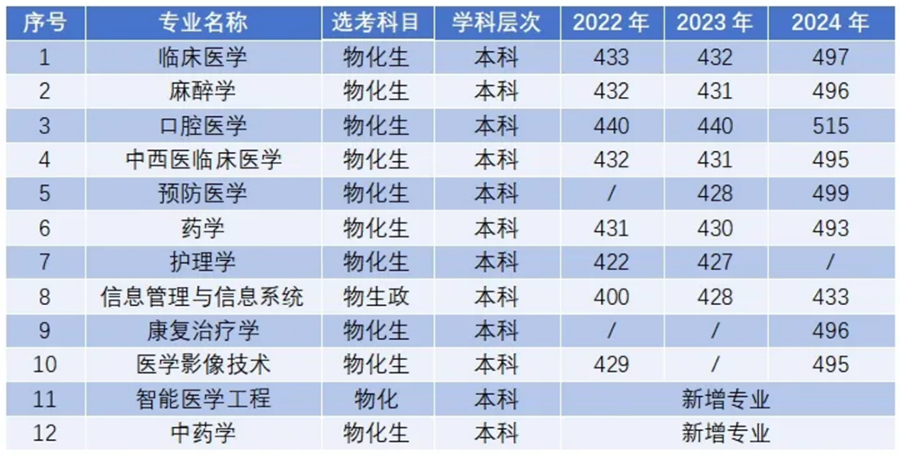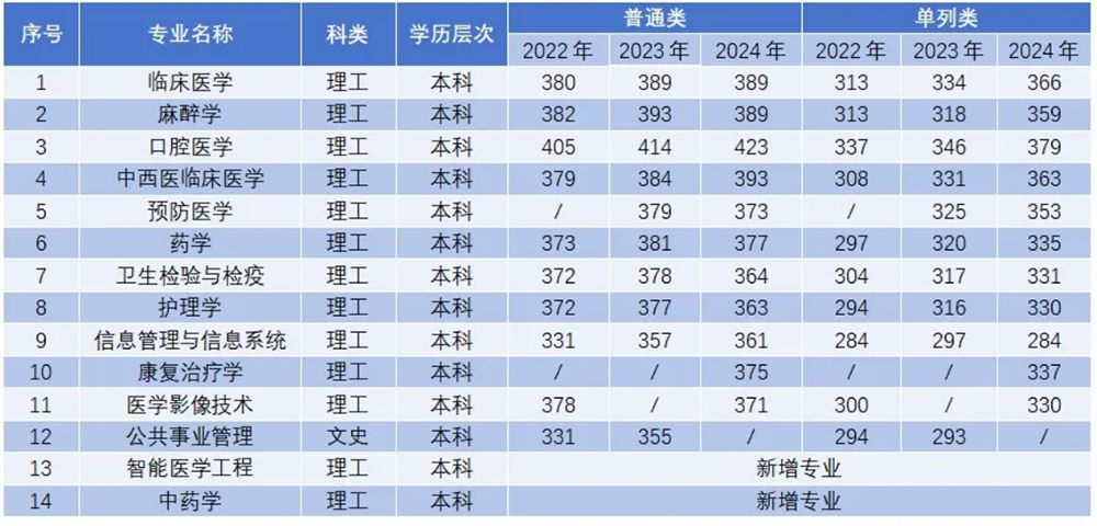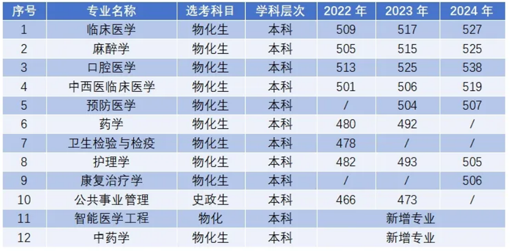 新疆第二医学院各省 2024 - 2022 年录取分数
