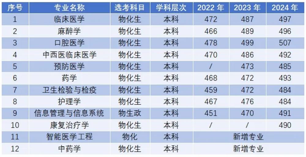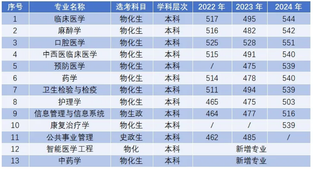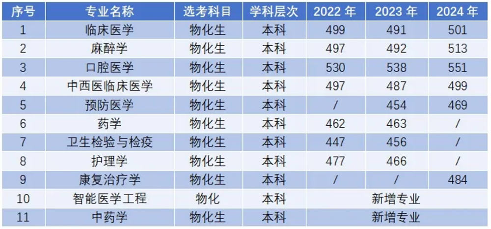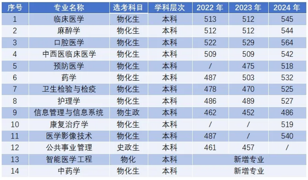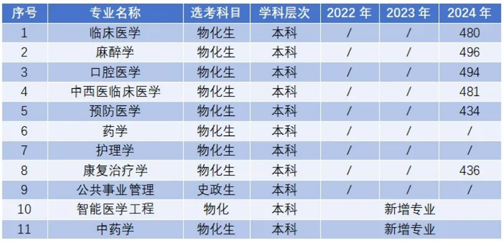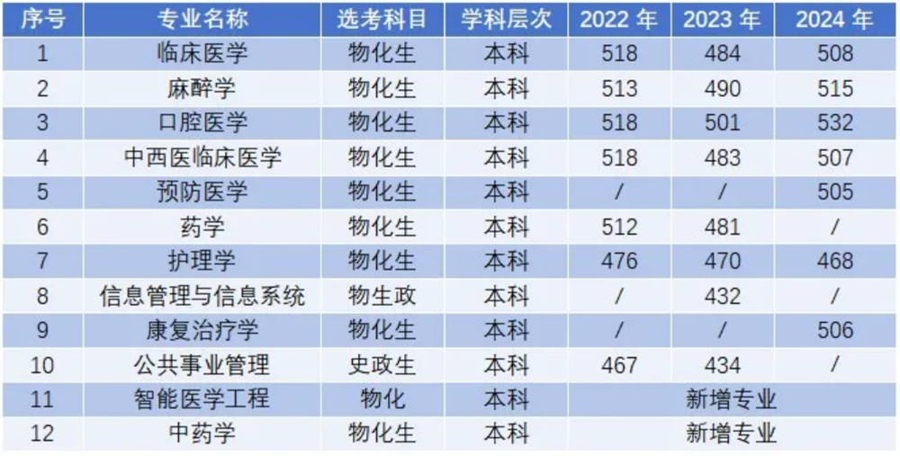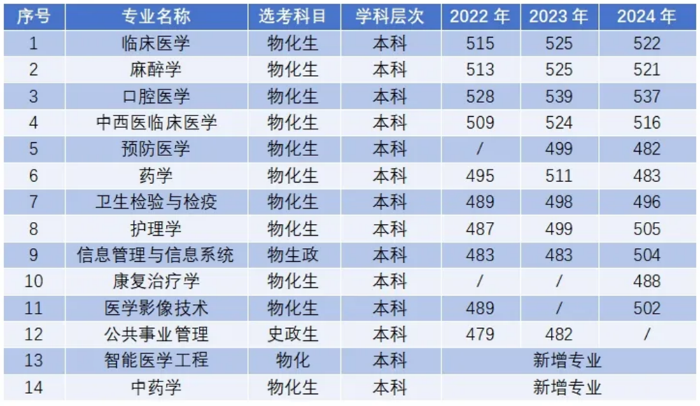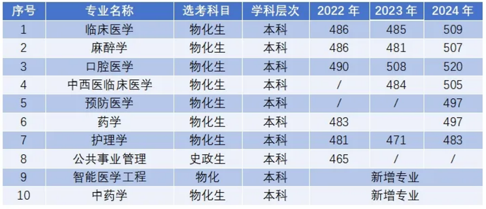 新疆第二医学院各省 2024 - 2022 年录取分数