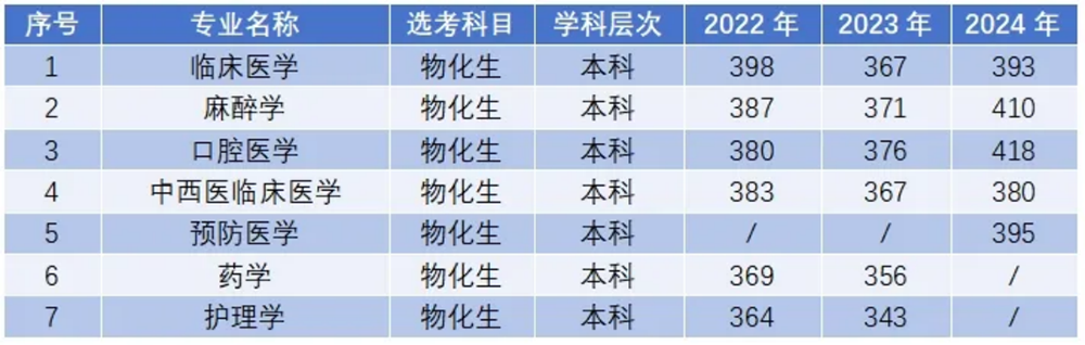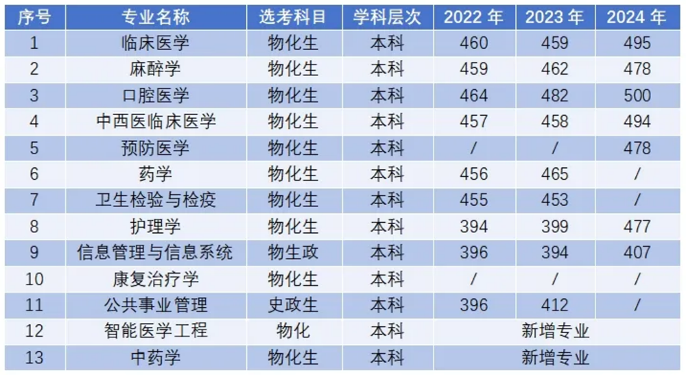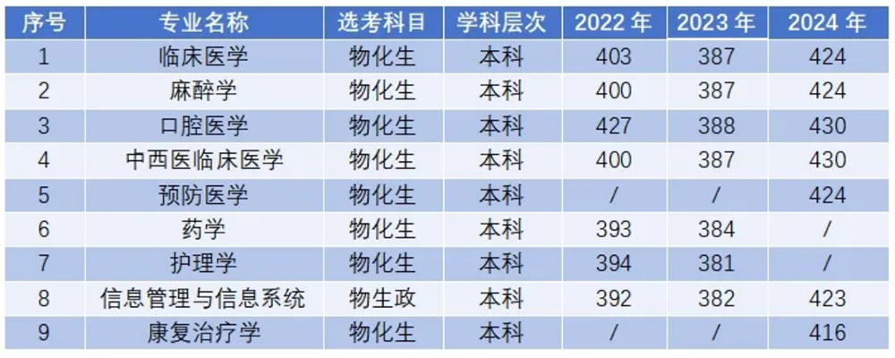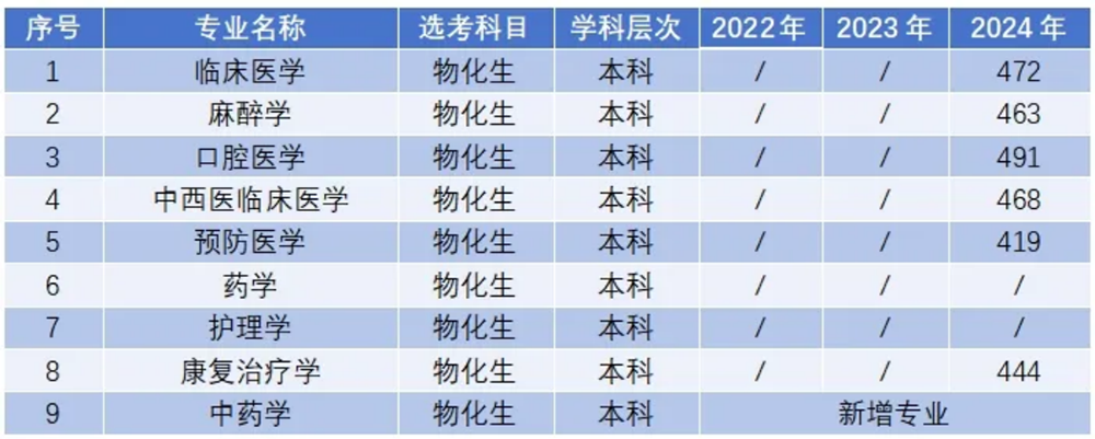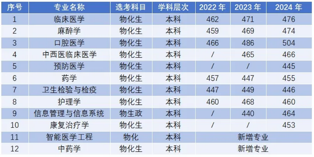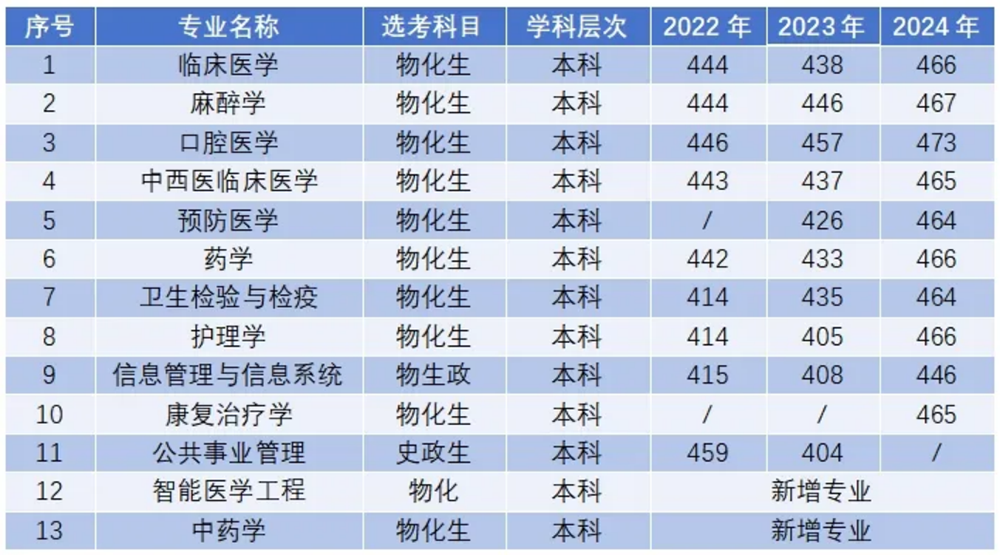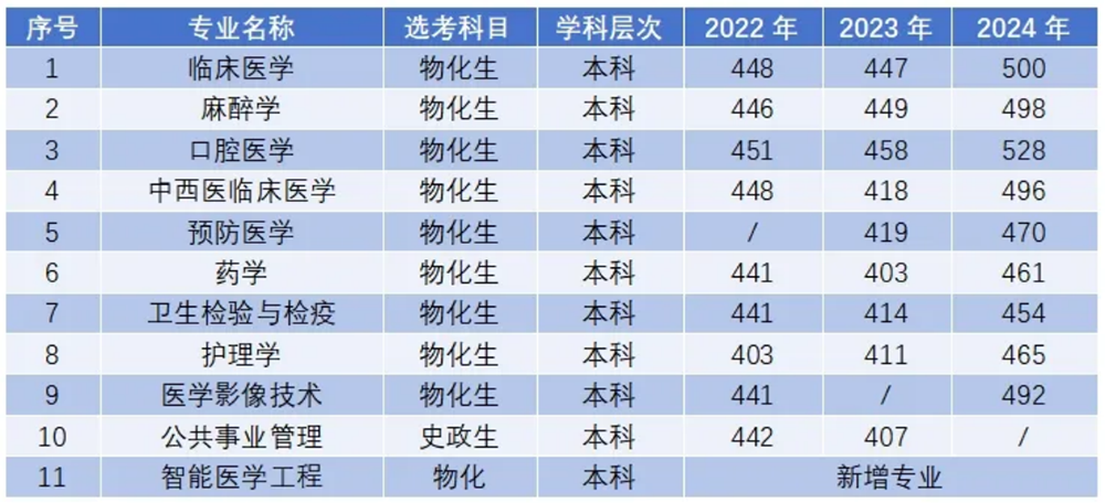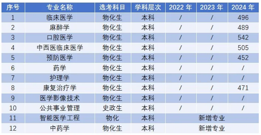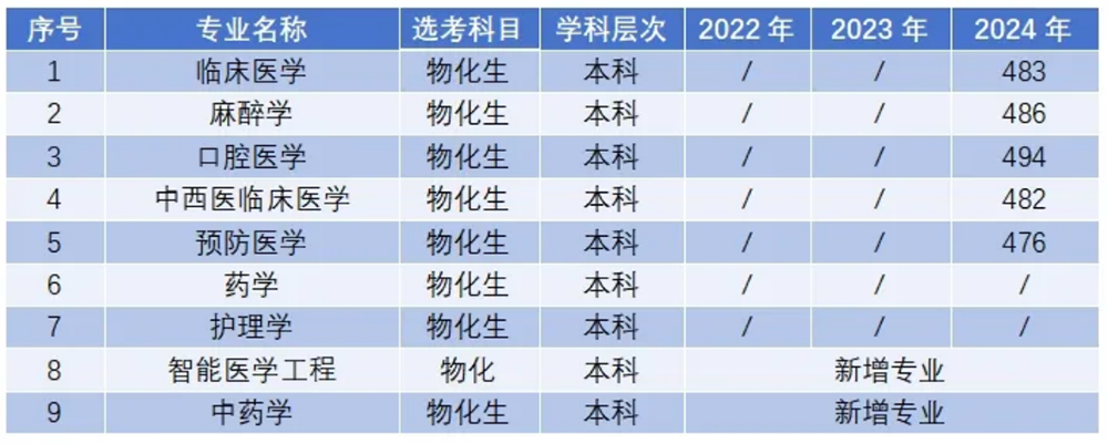 新疆第二医学院各省 2024 - 2022 年录取分数