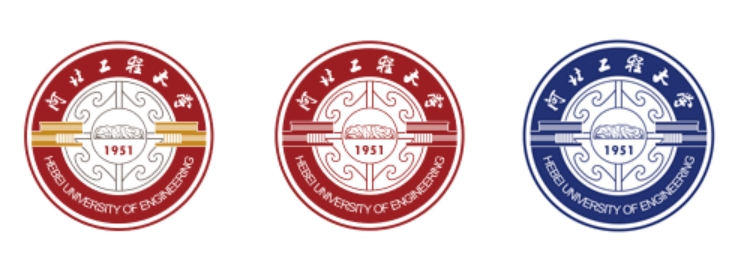 河北工程大学校徽由泰山石图形、数字1951、云纹图形、南门图形、中英文校名、四环、色彩等元素构成。 |