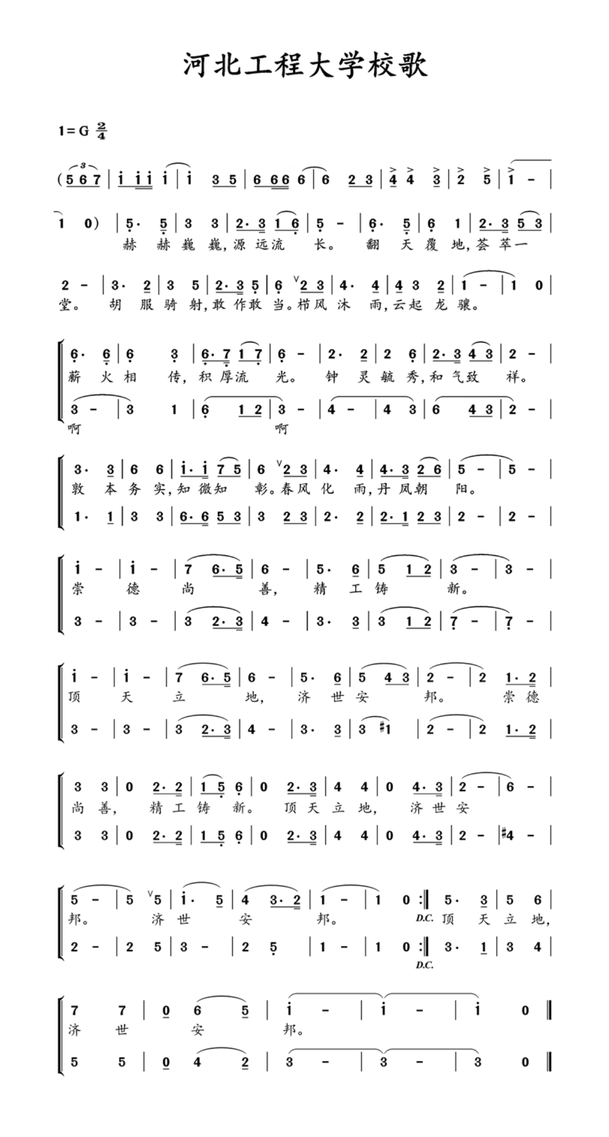 河北工程大学新校训、校徽、校歌歌词由学校大工程文化研究院主创,成员包括:哈明虎、刘胜、李怀、王彦林、侯居茌、万永彪、薛晴、孙国栋、王超。刘超、郭星、王世阳、杜瑞雪参加校徽设计。贾东水、刘心参加校歌歌词创作。校歌由张淑兰谱曲、蔺爱刚编曲。4100余名师生员工、校友参与过程稿讨论。 |