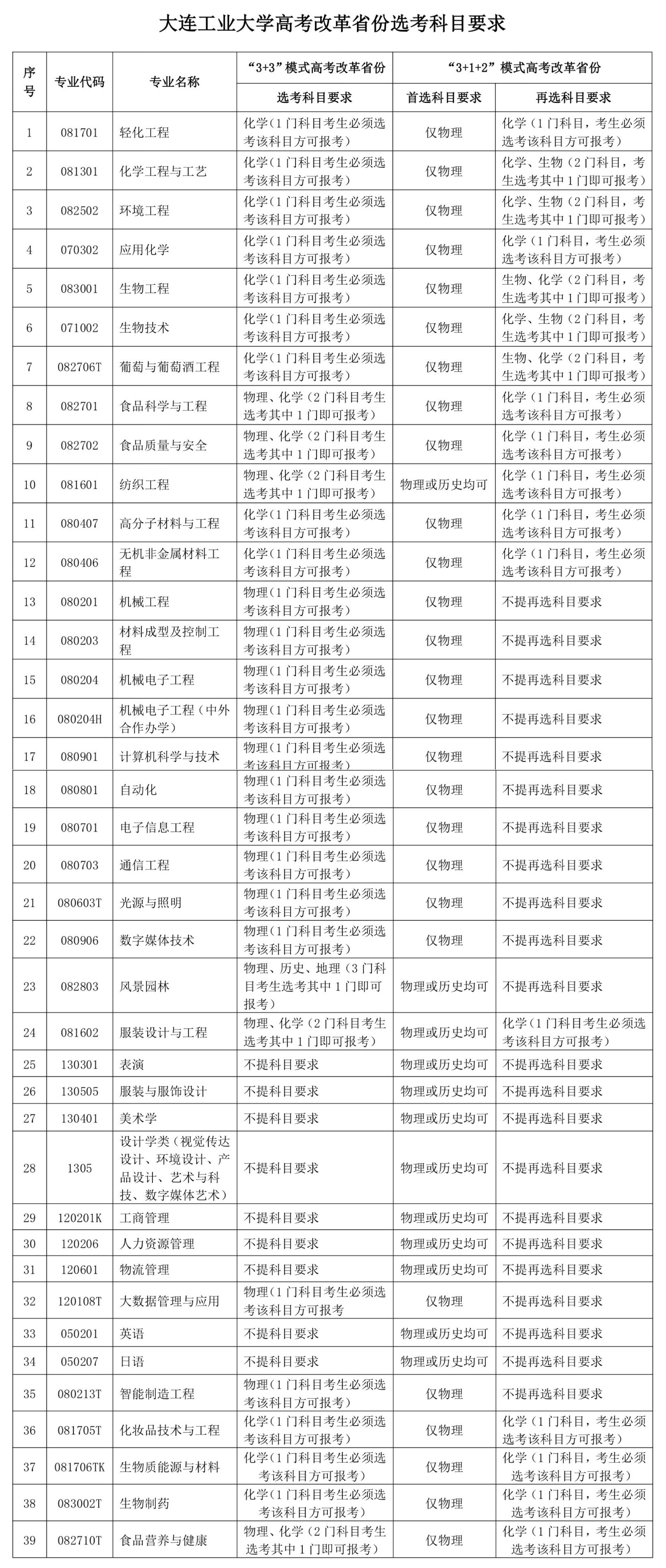 5.实行高考改革省份招生专业选考科目要求详见附表。