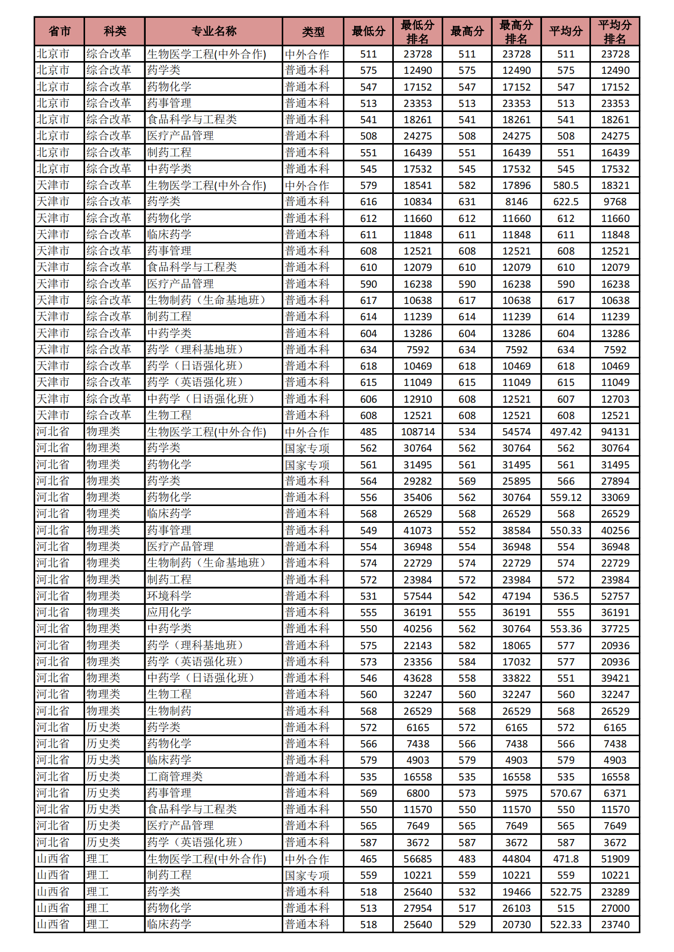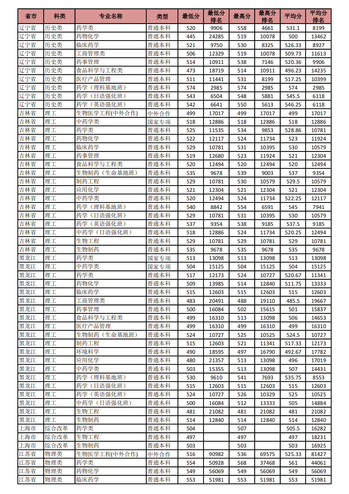 2021年 : 沈阳药科大学-2021年招生分数线