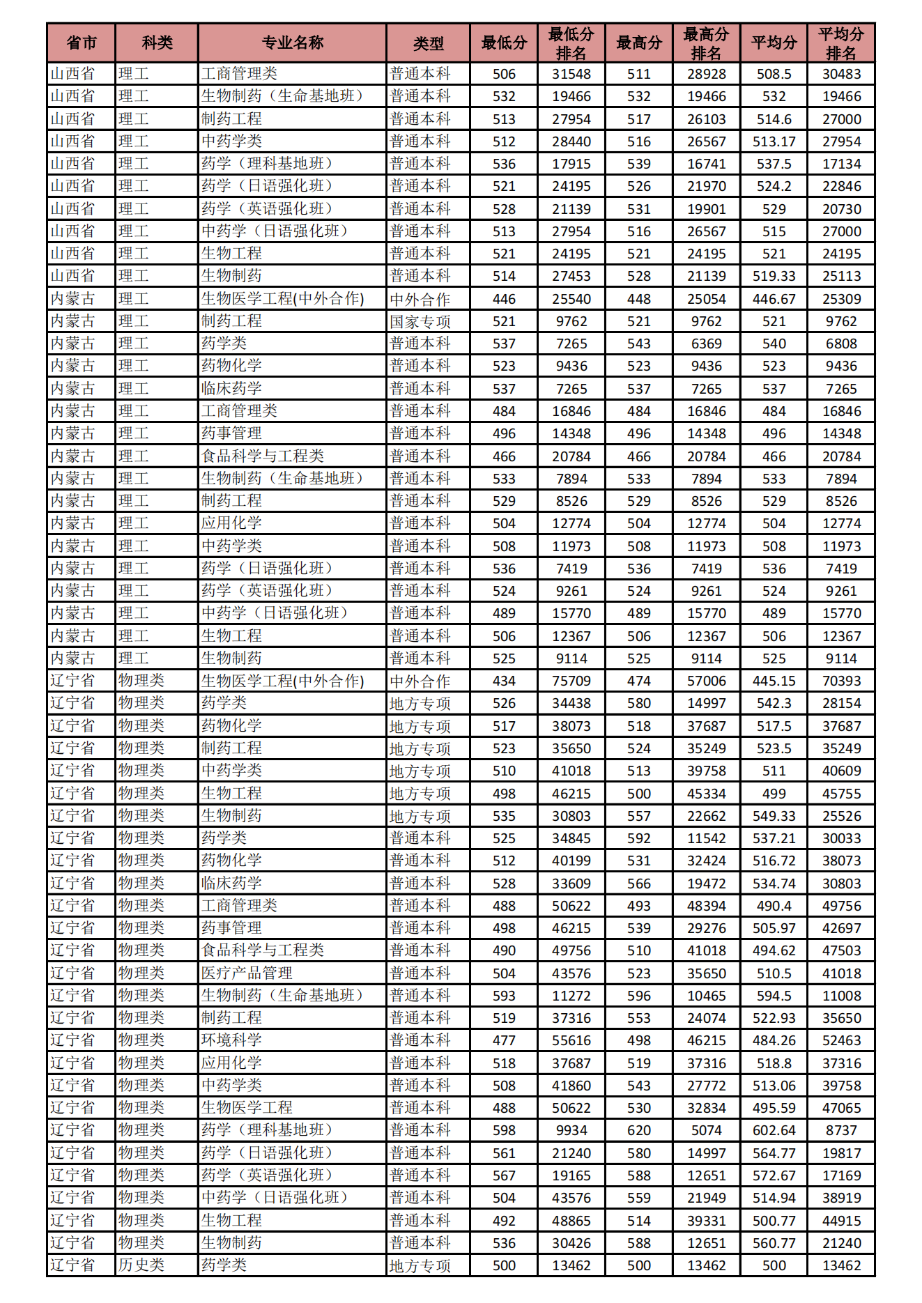 • 沈阳药科大学-2022年招生分数线
