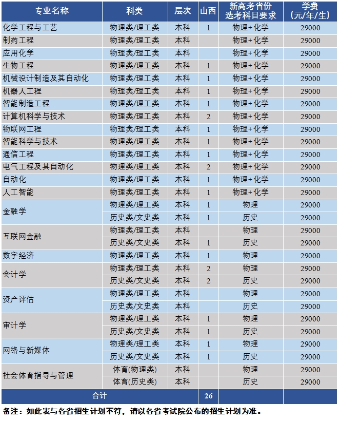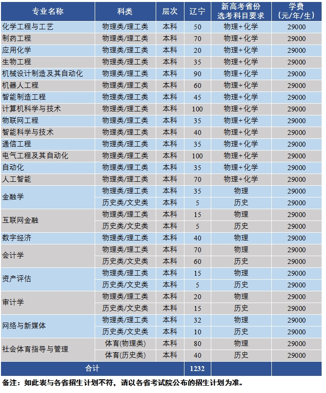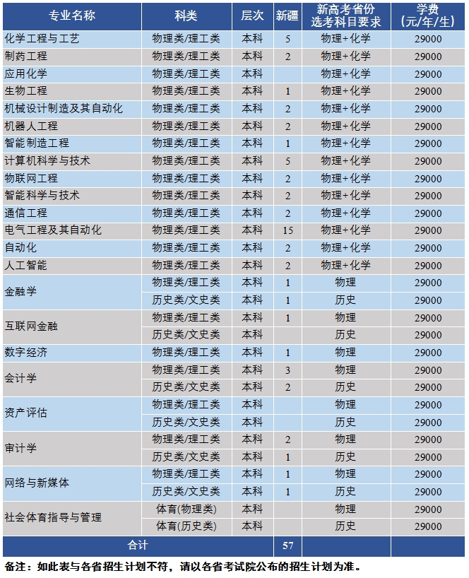 沈阳科技学院2025年新疆维吾尔自治区分专业招生计划
