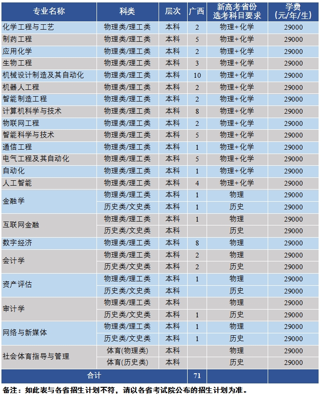 沈阳科技学院2025年广西壮族自治区分专业招生计划