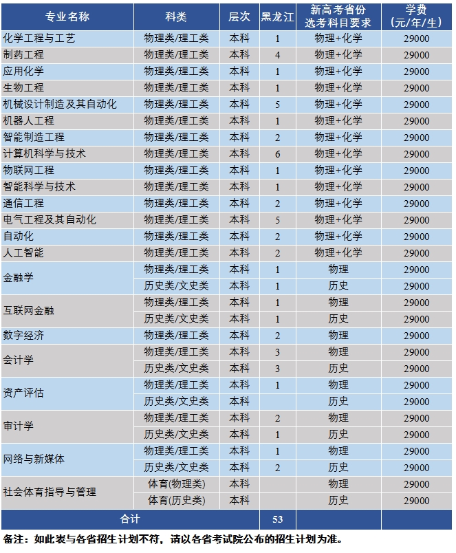 沈阳科技学院2025年黑龙江省分专业招生计划