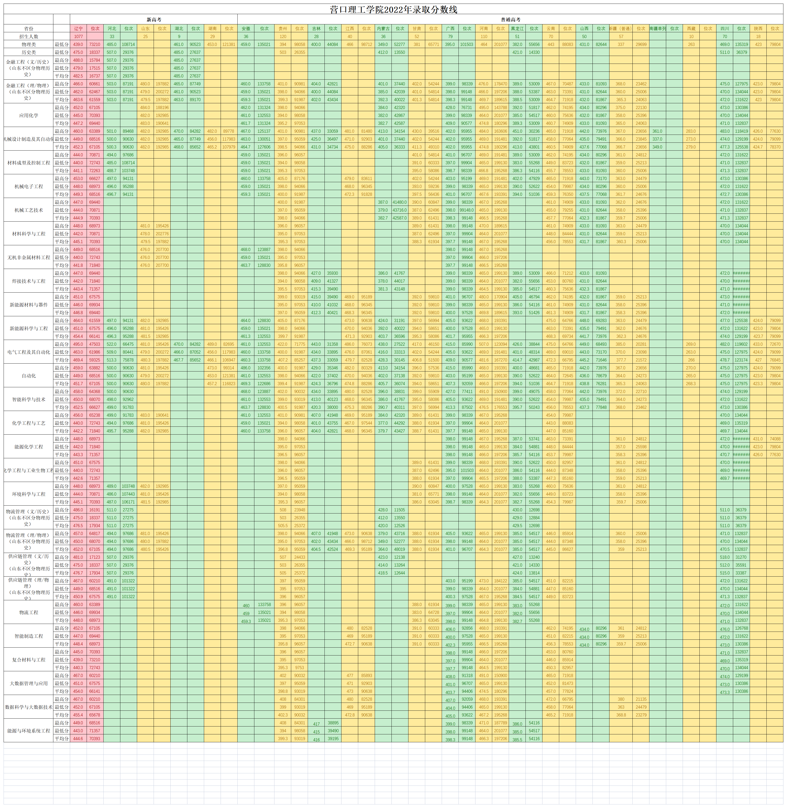 附件:  营口理工学院2022年各省区各专业录取分数线及位次