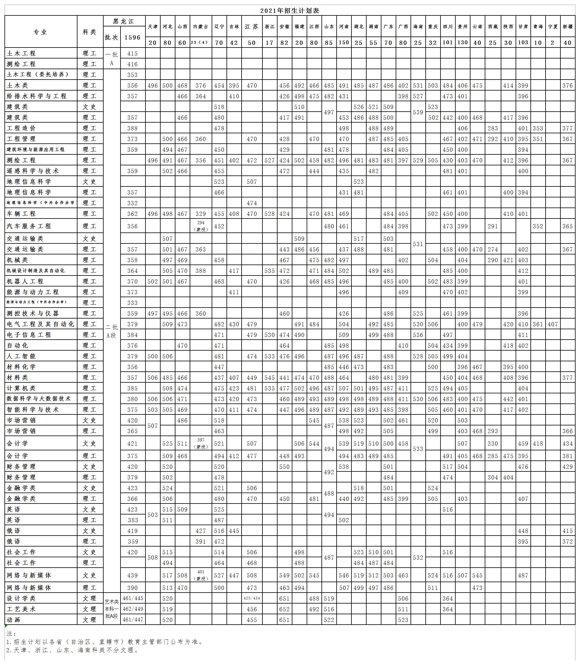 2021年 : 黑龙江工程学院-2021年全国招生计划