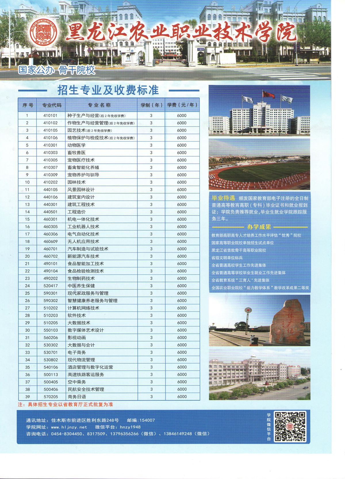 学    费 : 黑龙江农业职业技术学院2021年招生专业及收费标准
