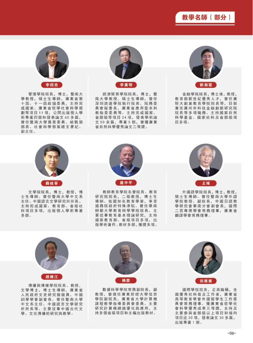 学校以国家级和省级一流本科专业、省级重点学科与重点专业建设为龙头,通过“人才强校”战略,聘请清华大学、中山大学、暨南大学等国内知名高校的教授、专家、博导引领学校中青年骨干教师成长,打造与建设一支高水平师资队伍。